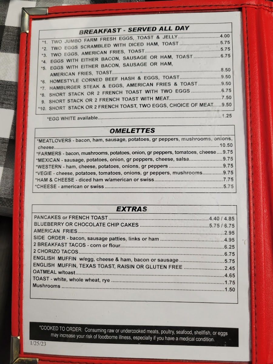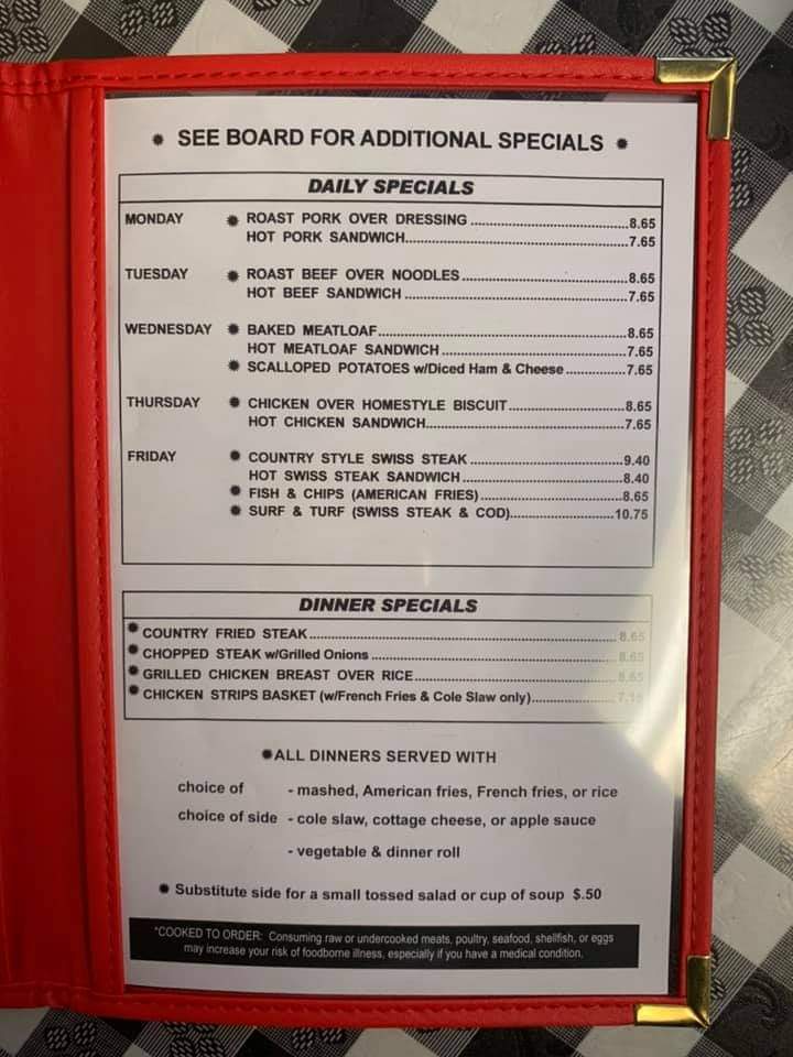 Miller's Family Restaurant Menu